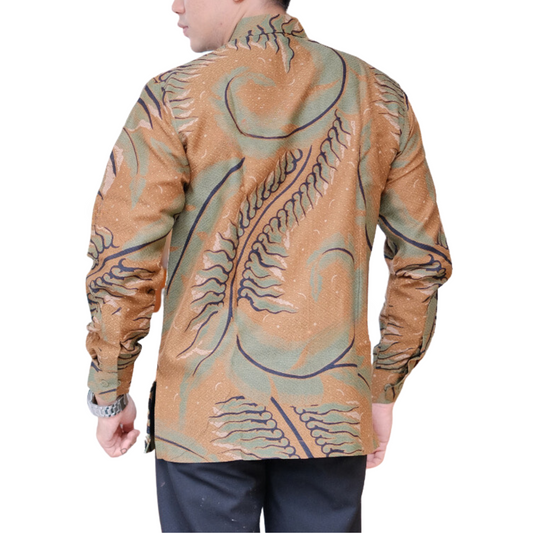 Men's Batik Shirt Beige Long Sleeve - Abang
