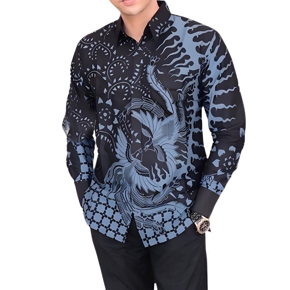 Men's Batik Shirt Blue Long Sleeve - Abiyasa