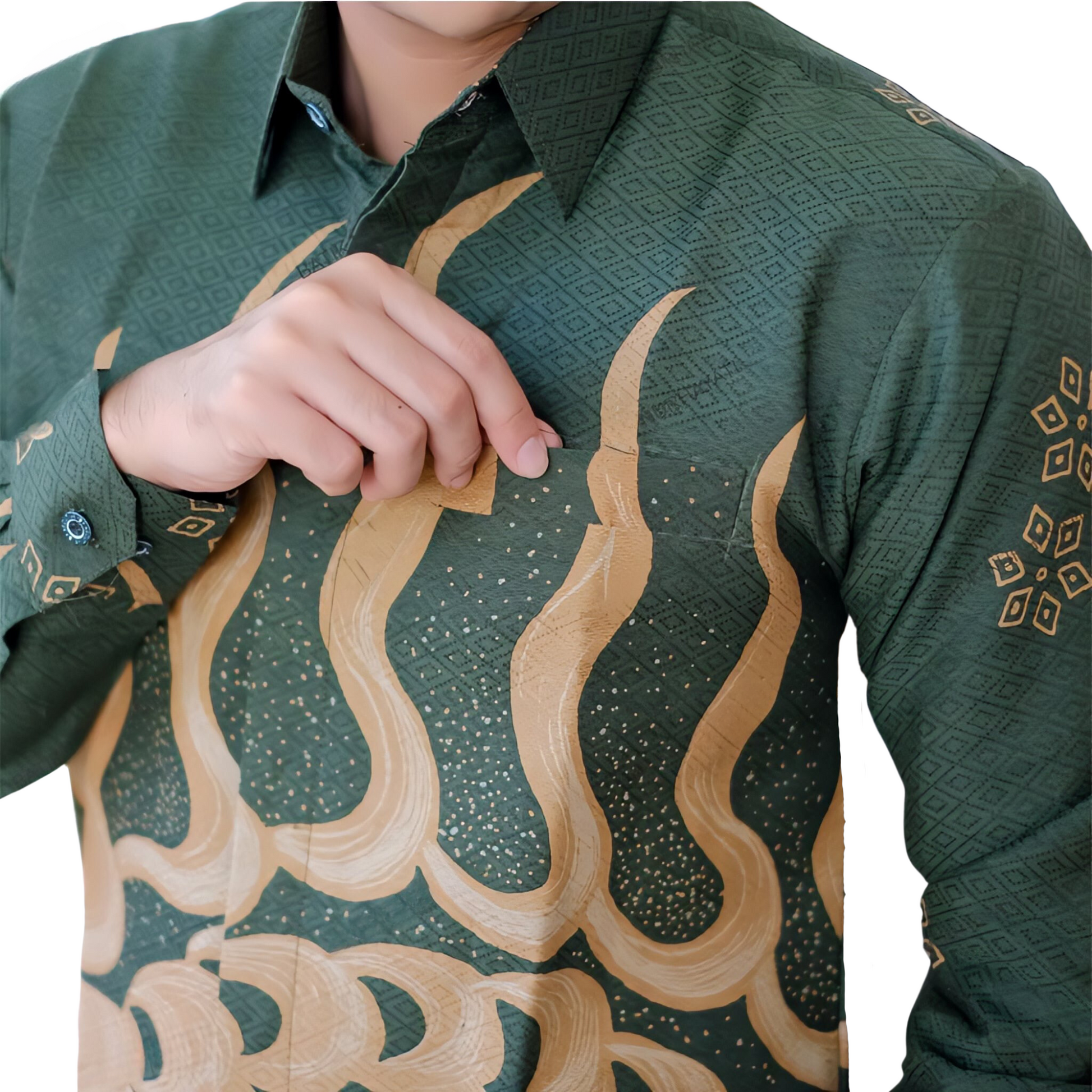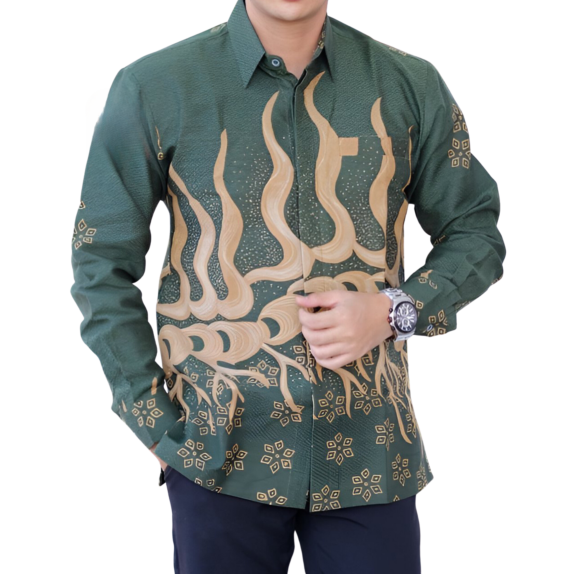 Men's Batik Shirt Green Long Sleeve - Terumbu