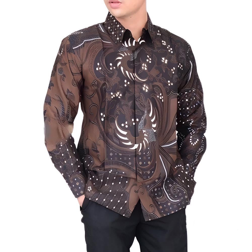 Men's Batik Shirt Brown Long Sleeve - Wilarikta
