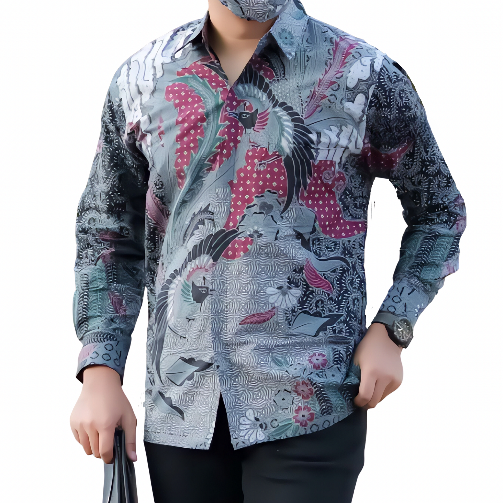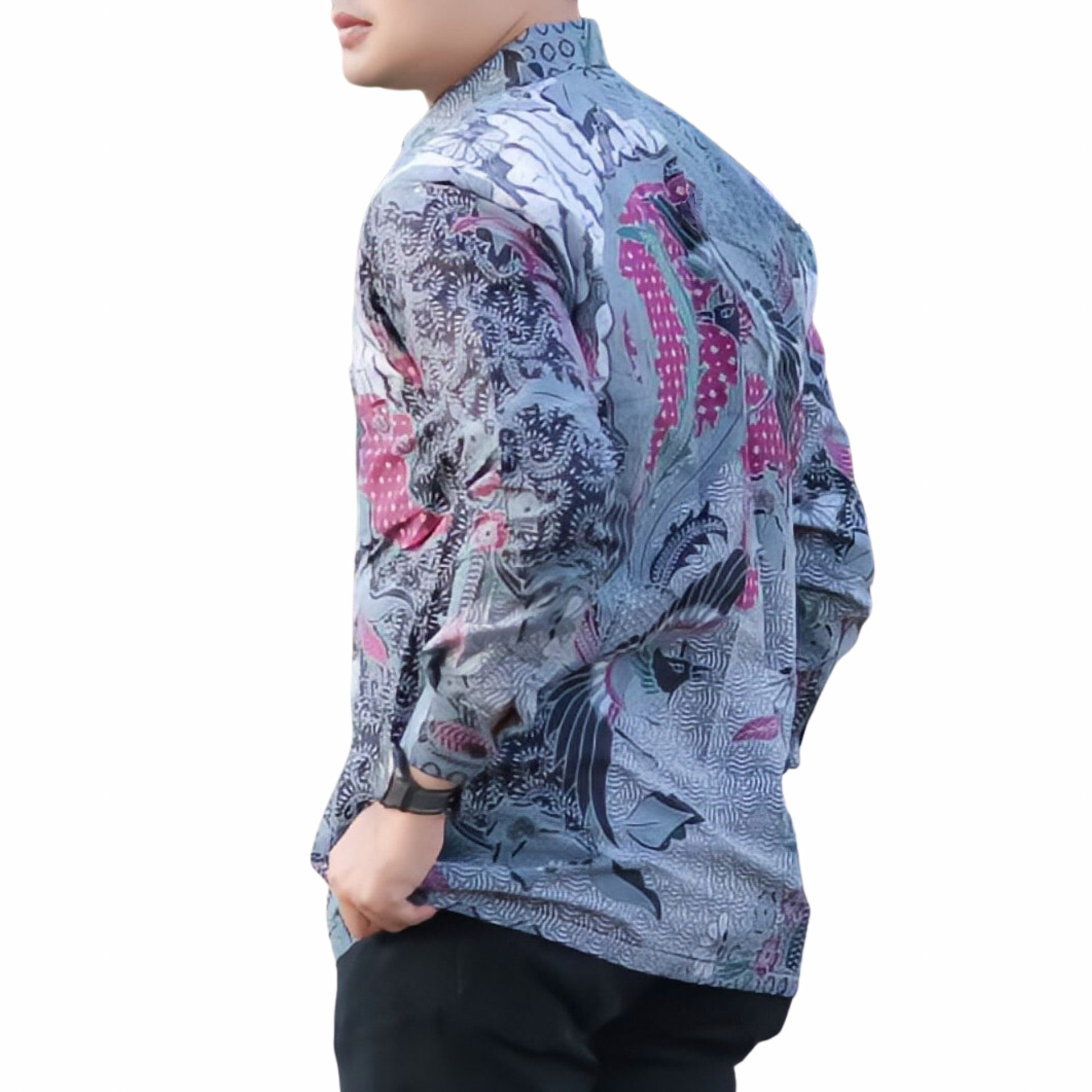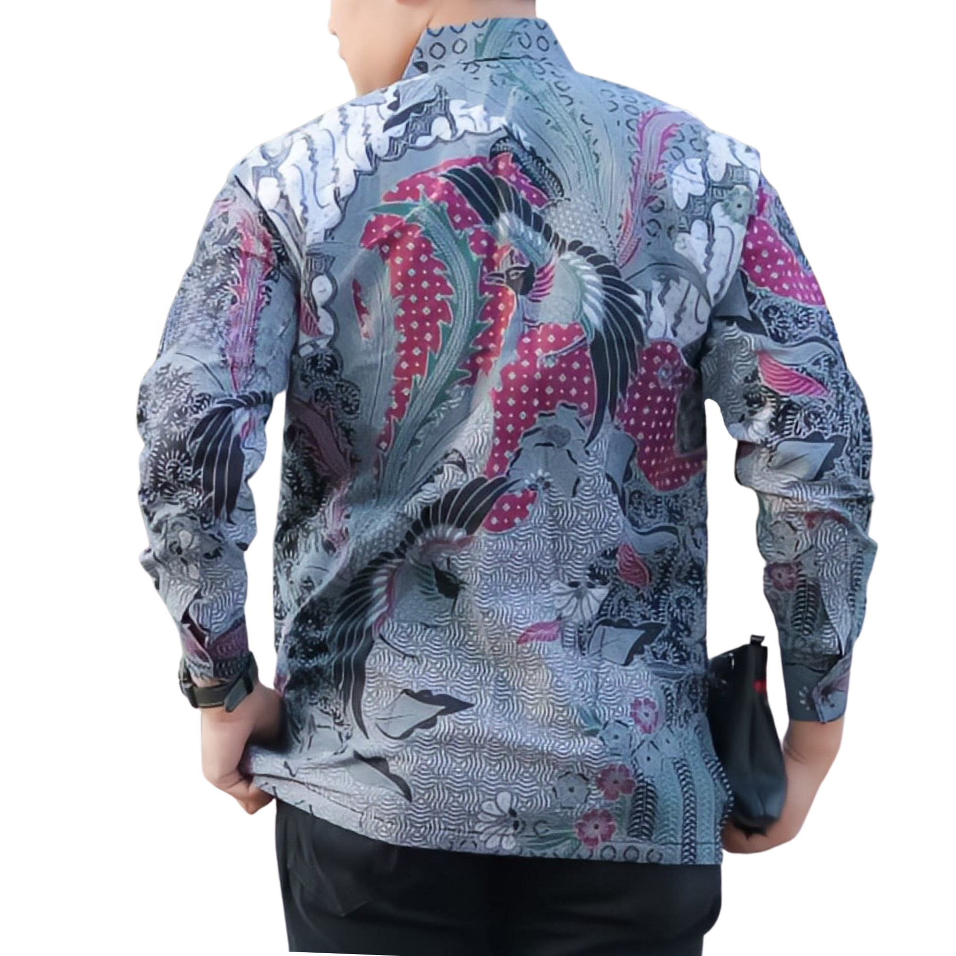 Men's Batik Shirt Gray Long Sleeve - Amora