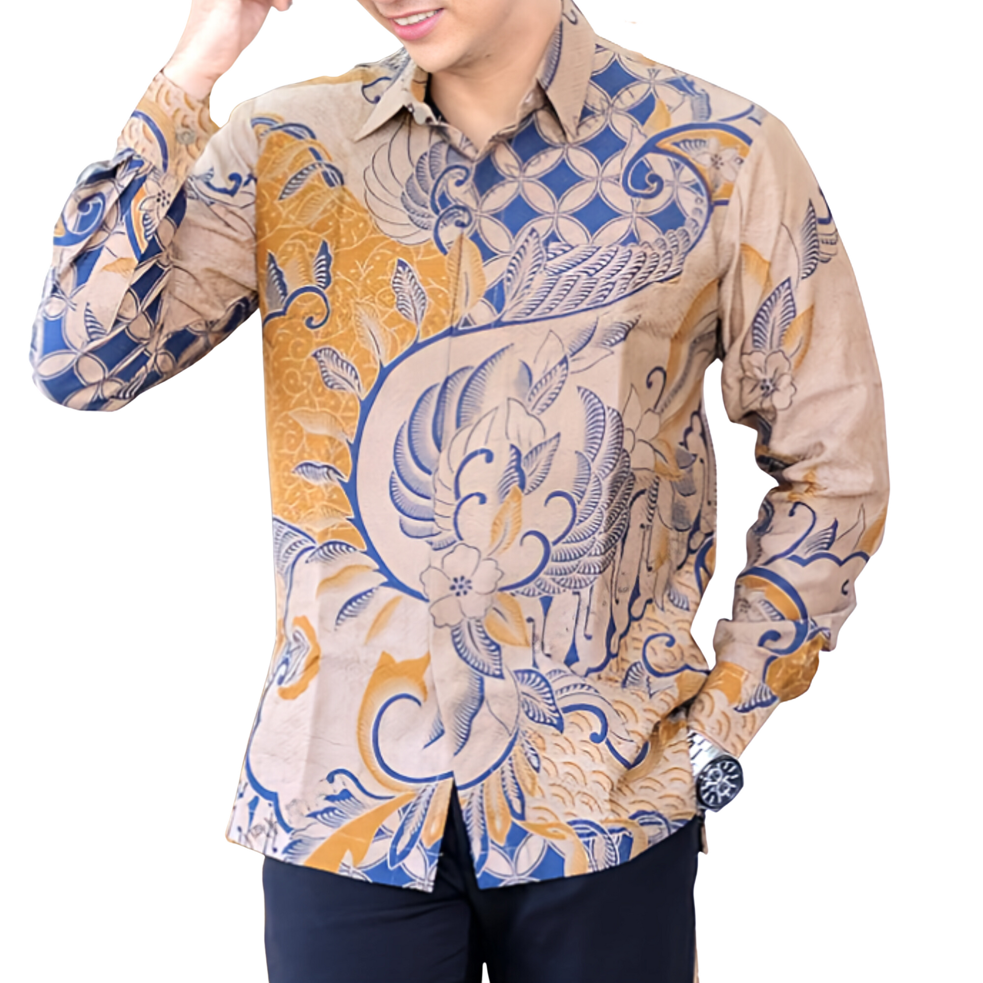 Men's Batik Shirt Beige Long Sleeve - Padi