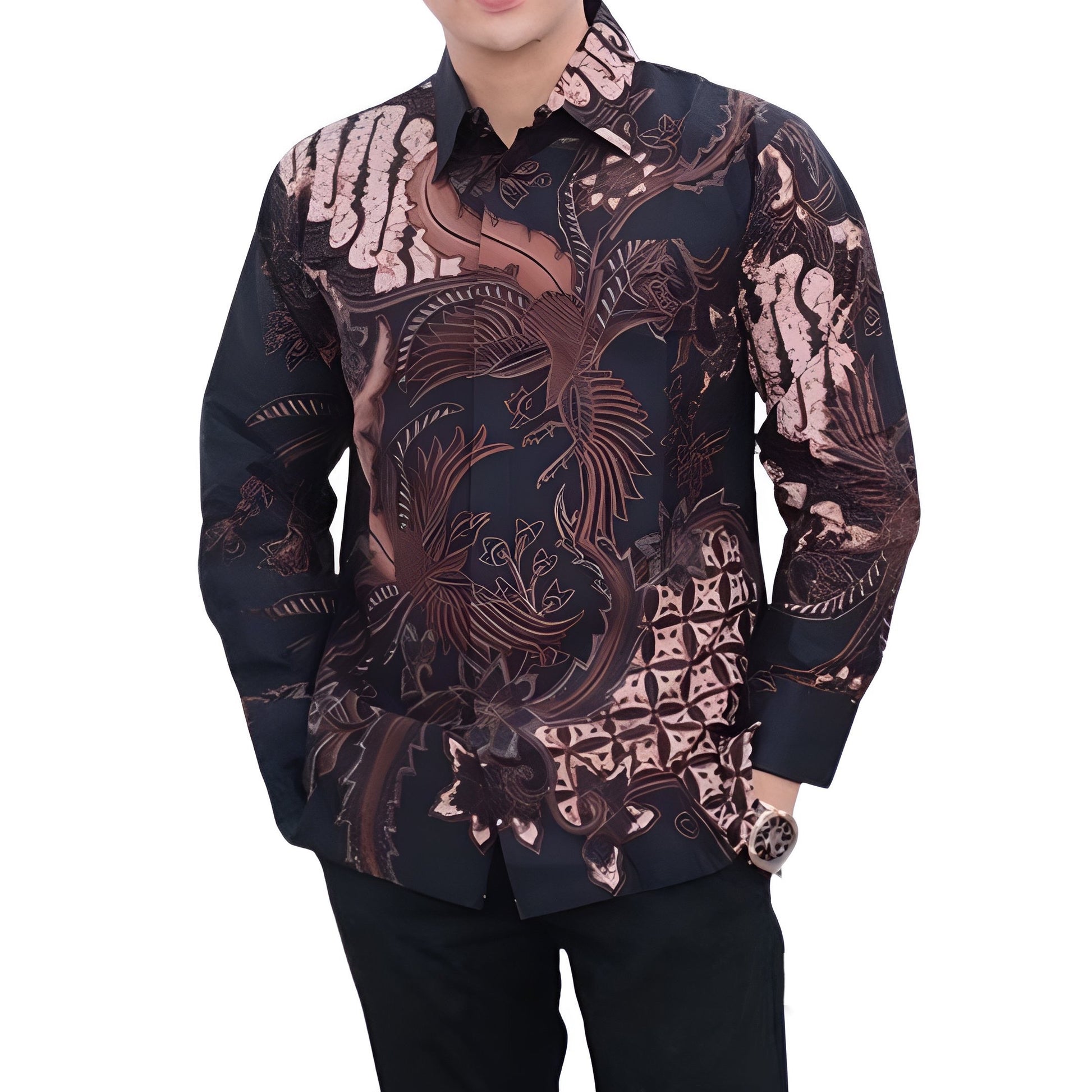 Men's Batik Shirt Black Long Sleeve - Adinata