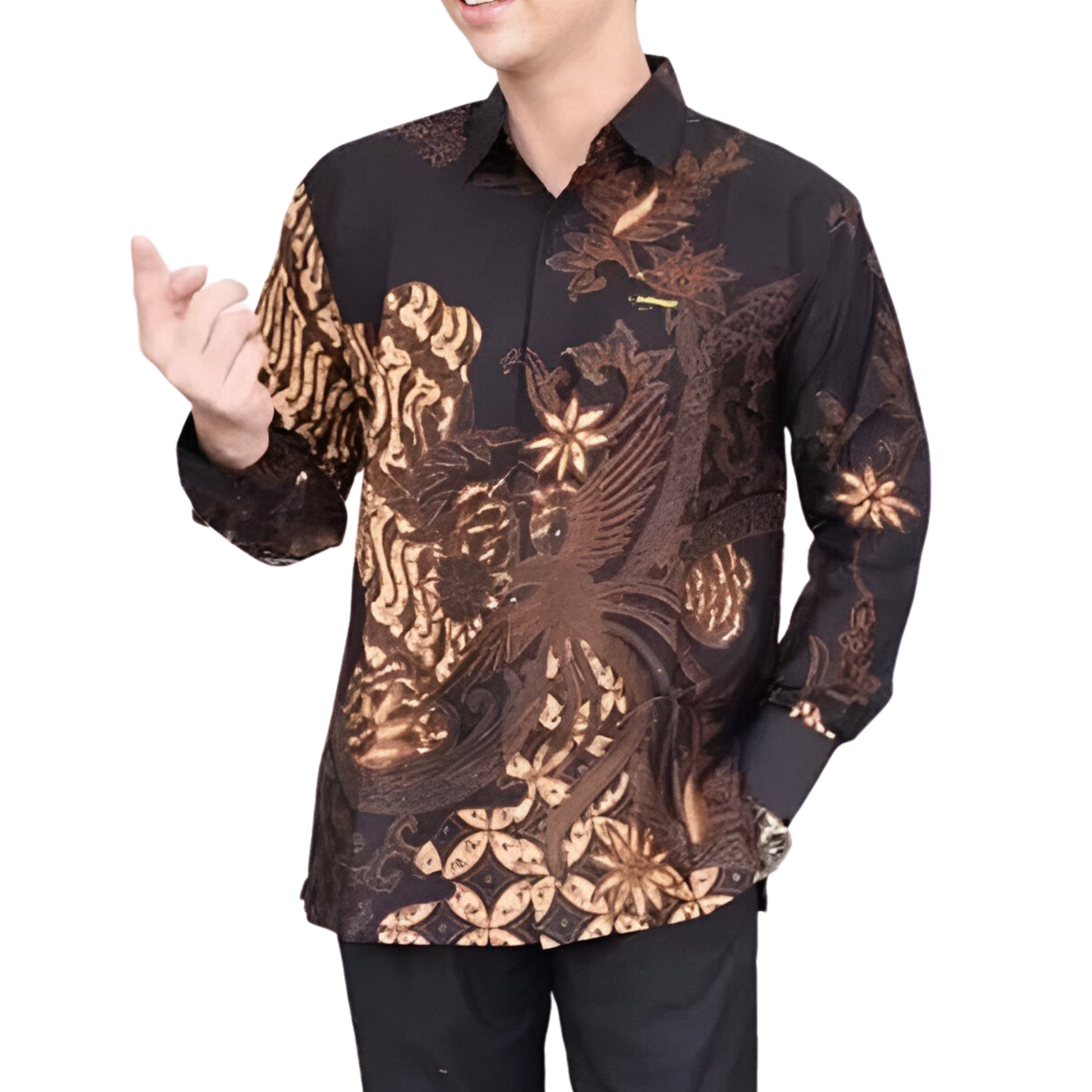 Men's Batik Shirt Black Long Sleeve - Rajaswa