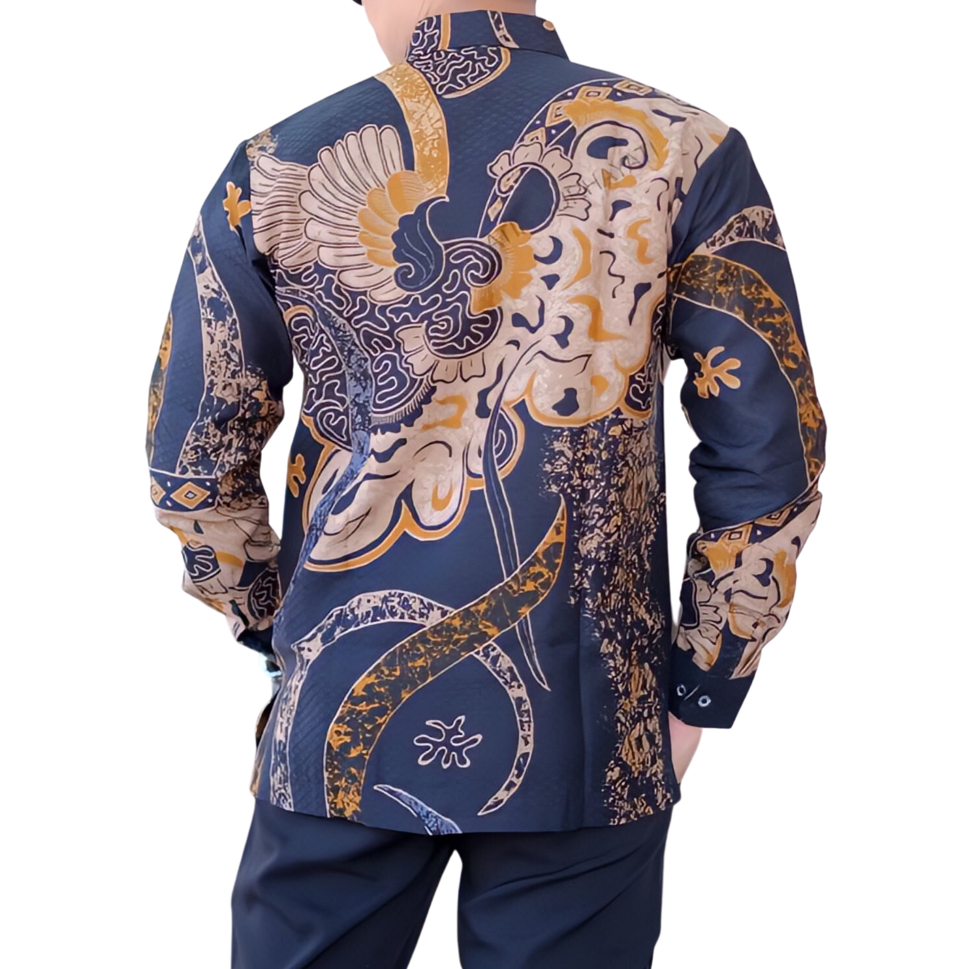Men's Batik Shirt Blue Long Sleeve - Dewata