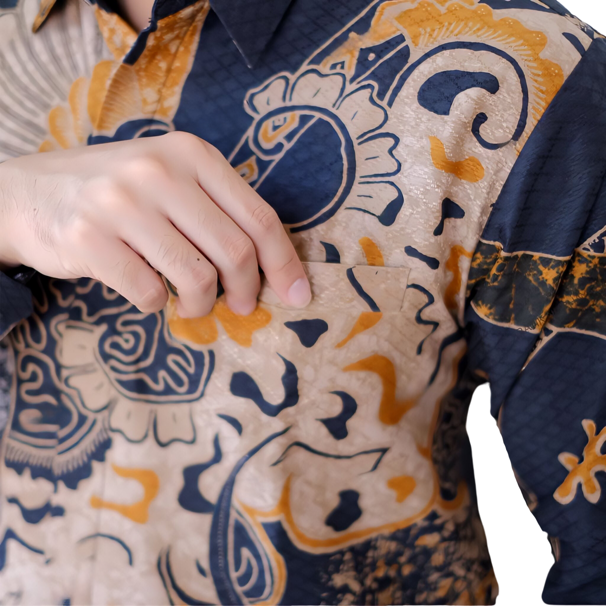 The intricate batik design in black adds a touch touch of elegance and uniqueness to this shirt. Each pattern is designed by a professional batik craftsmen ensuring that every shirt is one of a kind.