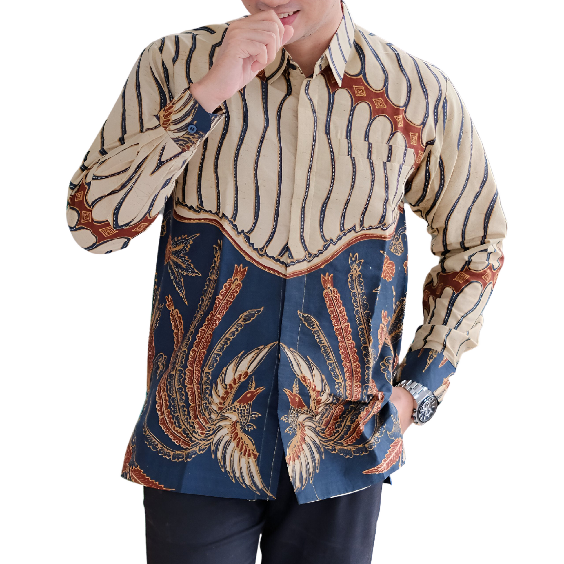 Men's Batik Shirt Blue Long Sleeve - Garuda