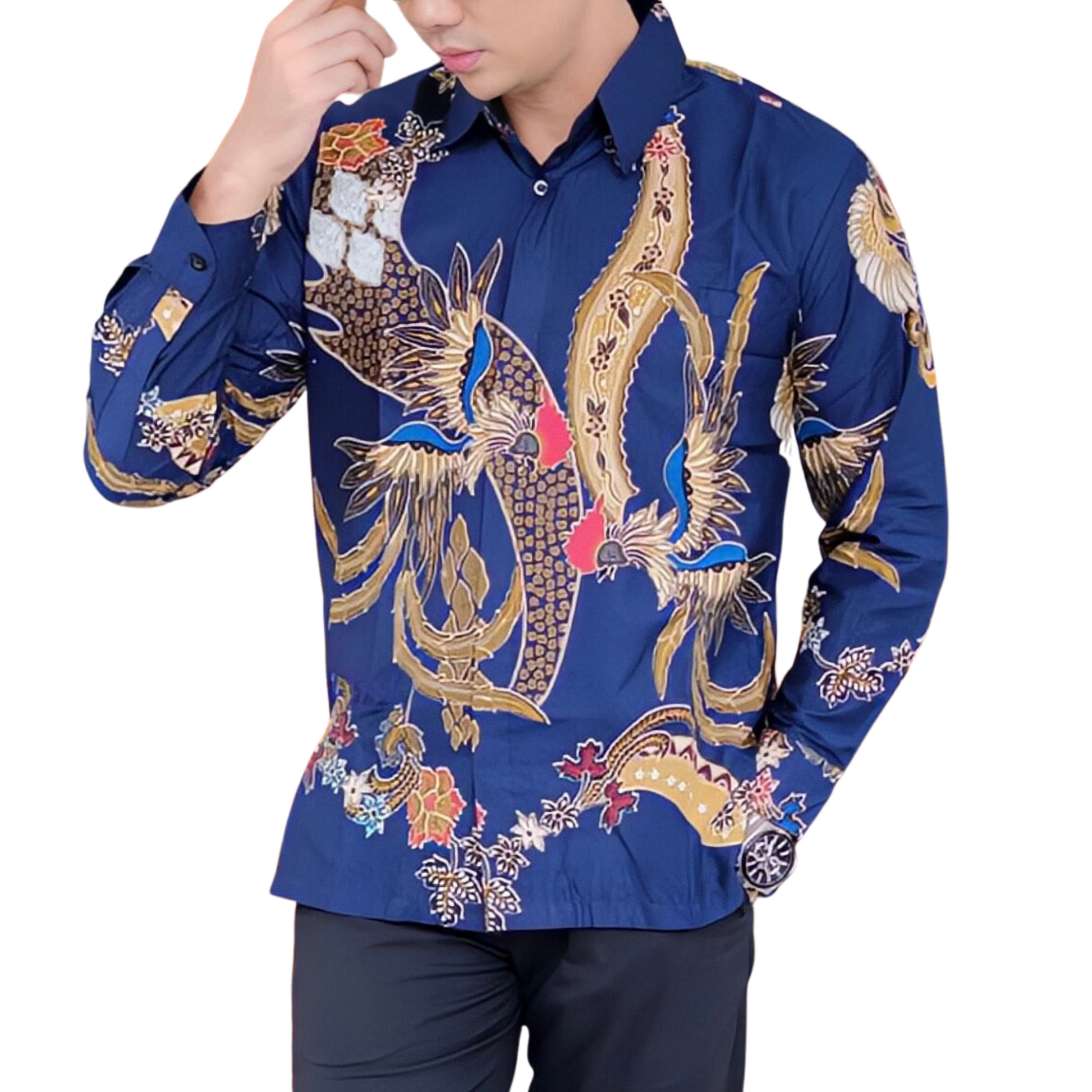 Men's Batik Shirt Blue Long Sleeve - Prasetya