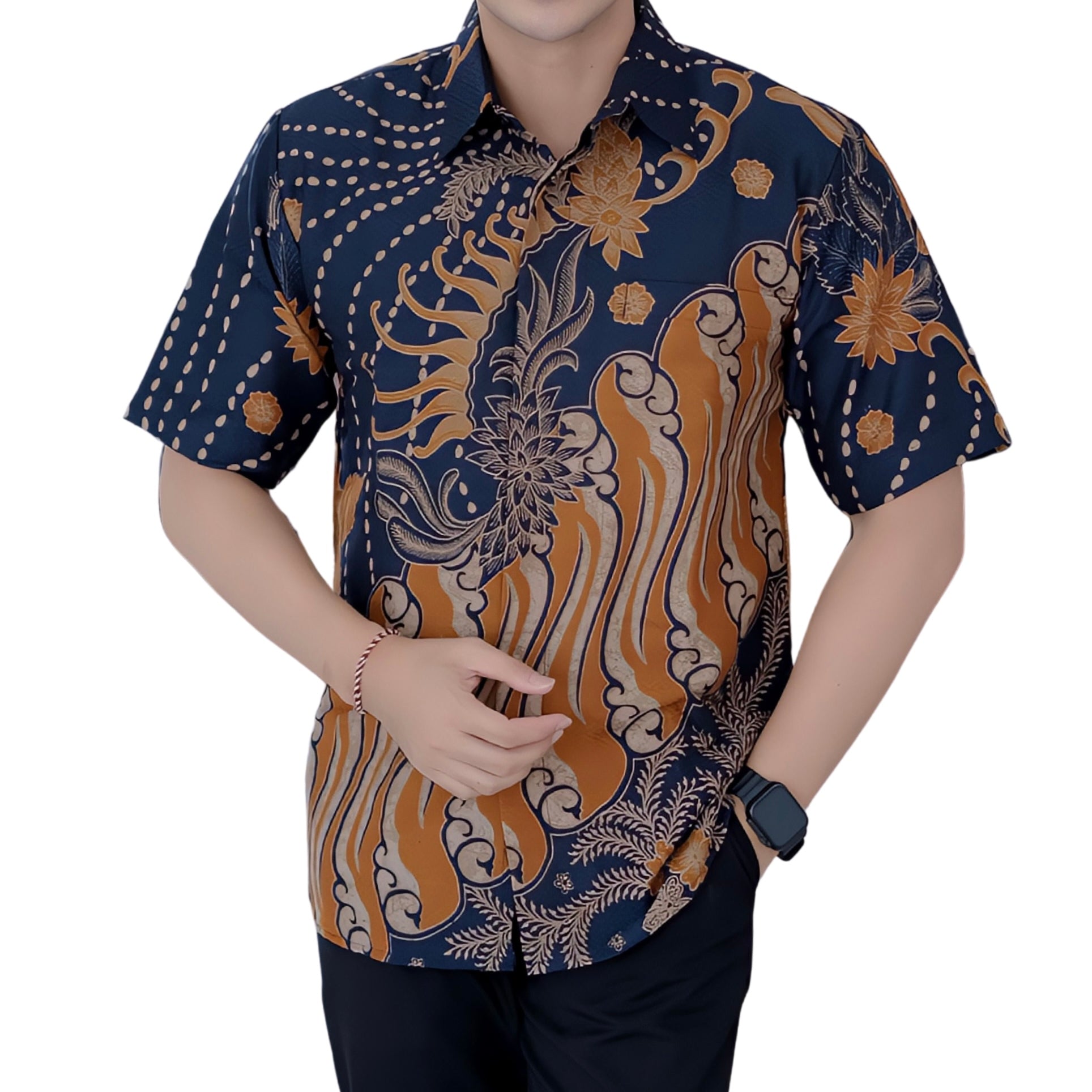 Men's Batik Shirt Blue Short Sleeve - Halmahera