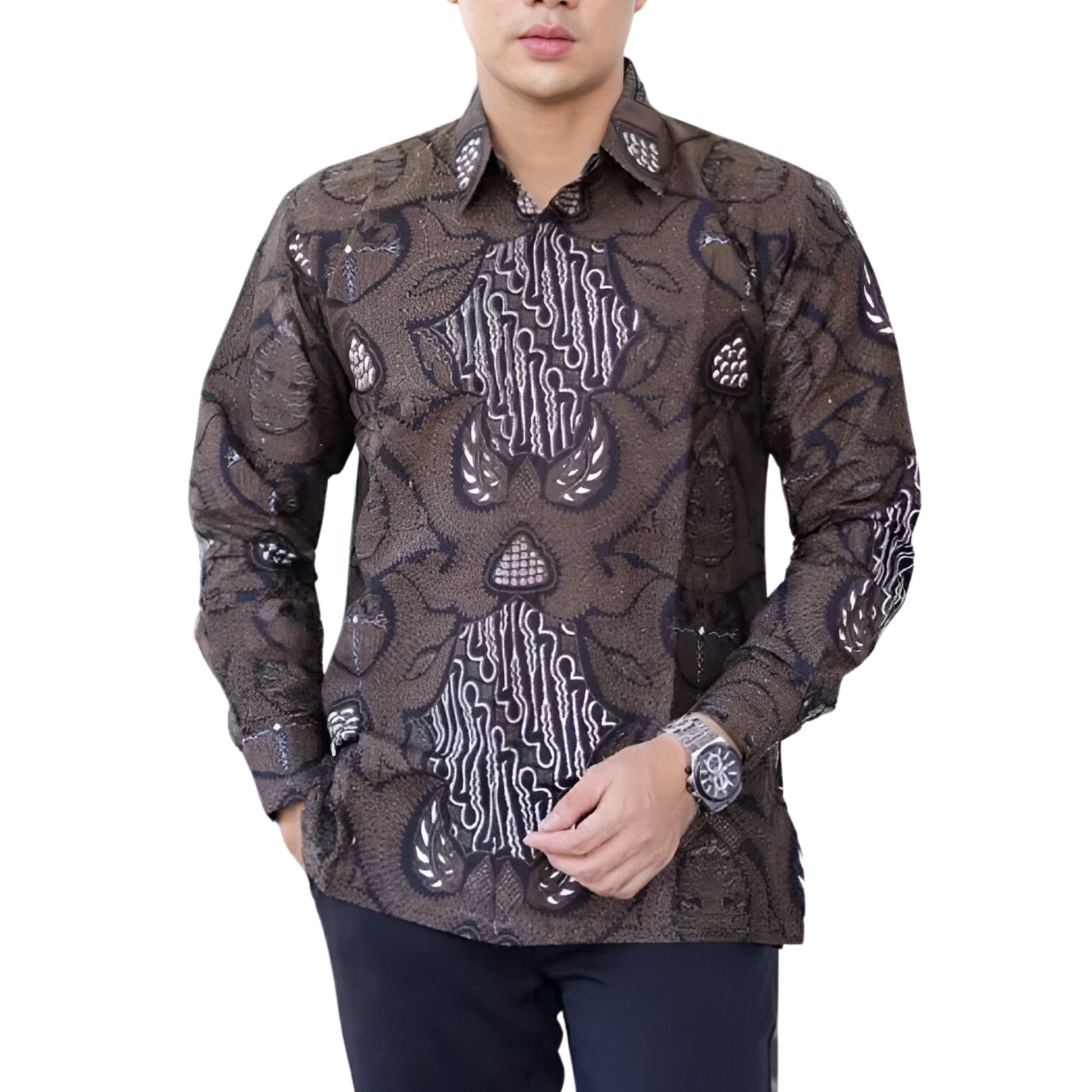 Men's Batik Shirt Brown Long Sleeve - Giandra