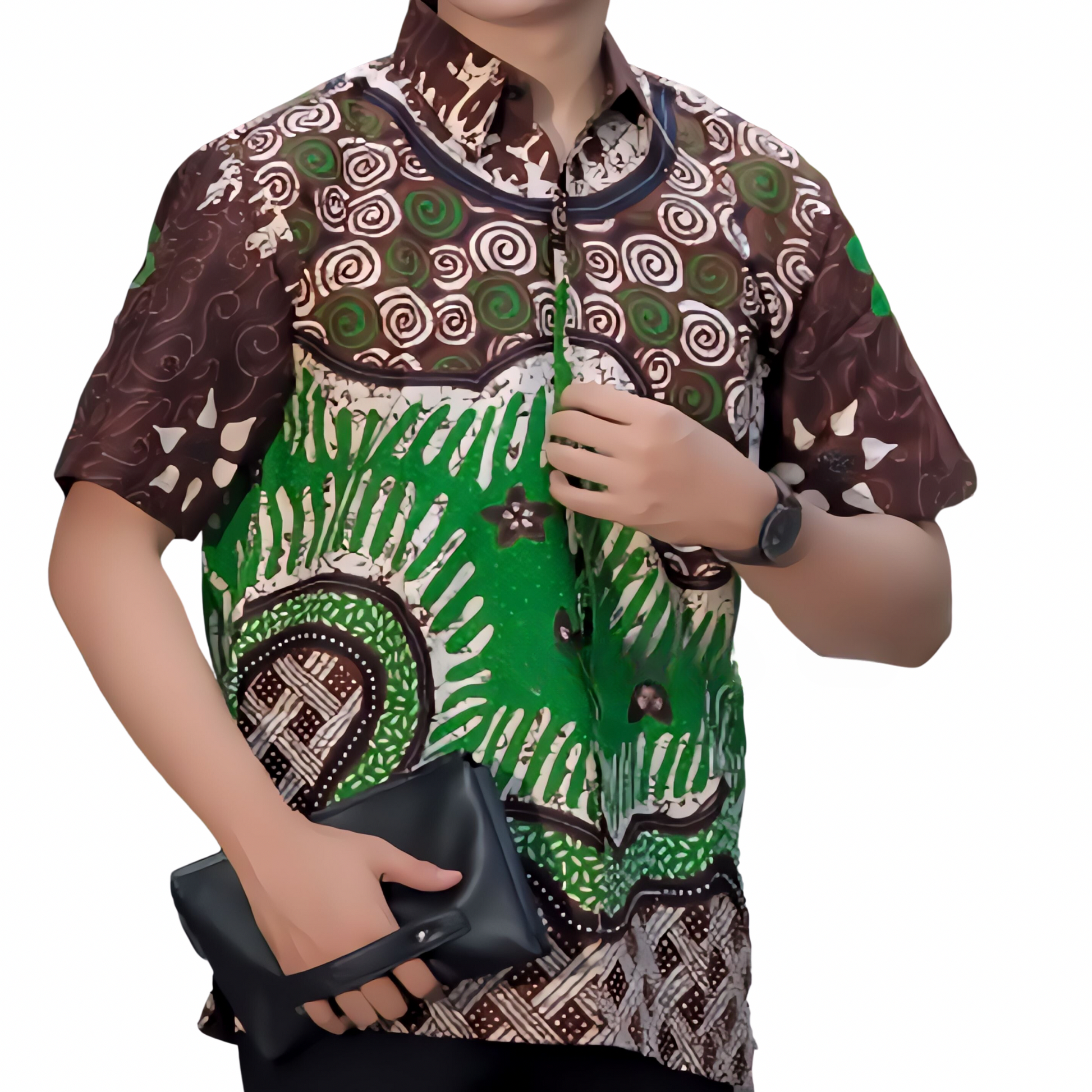 Men's Batik Shirt Green Short Sleeve - Bagong