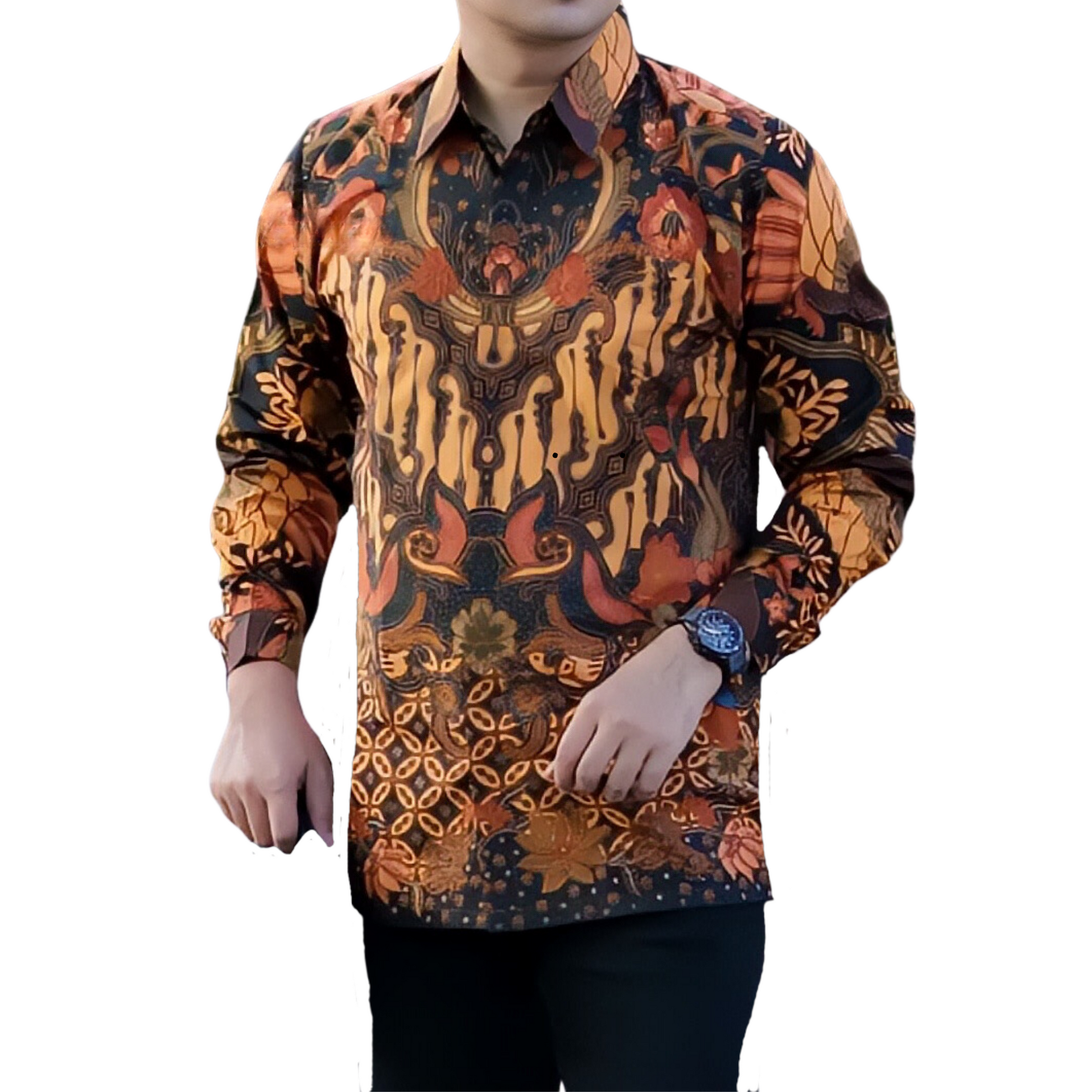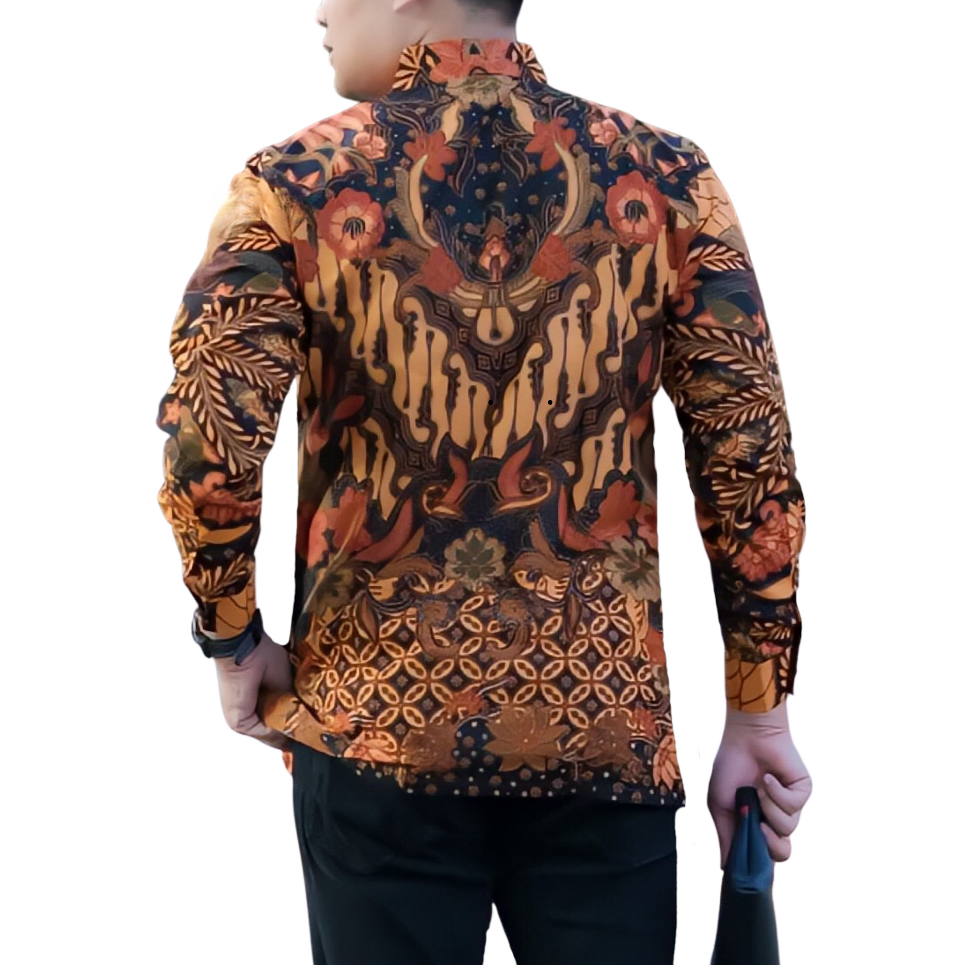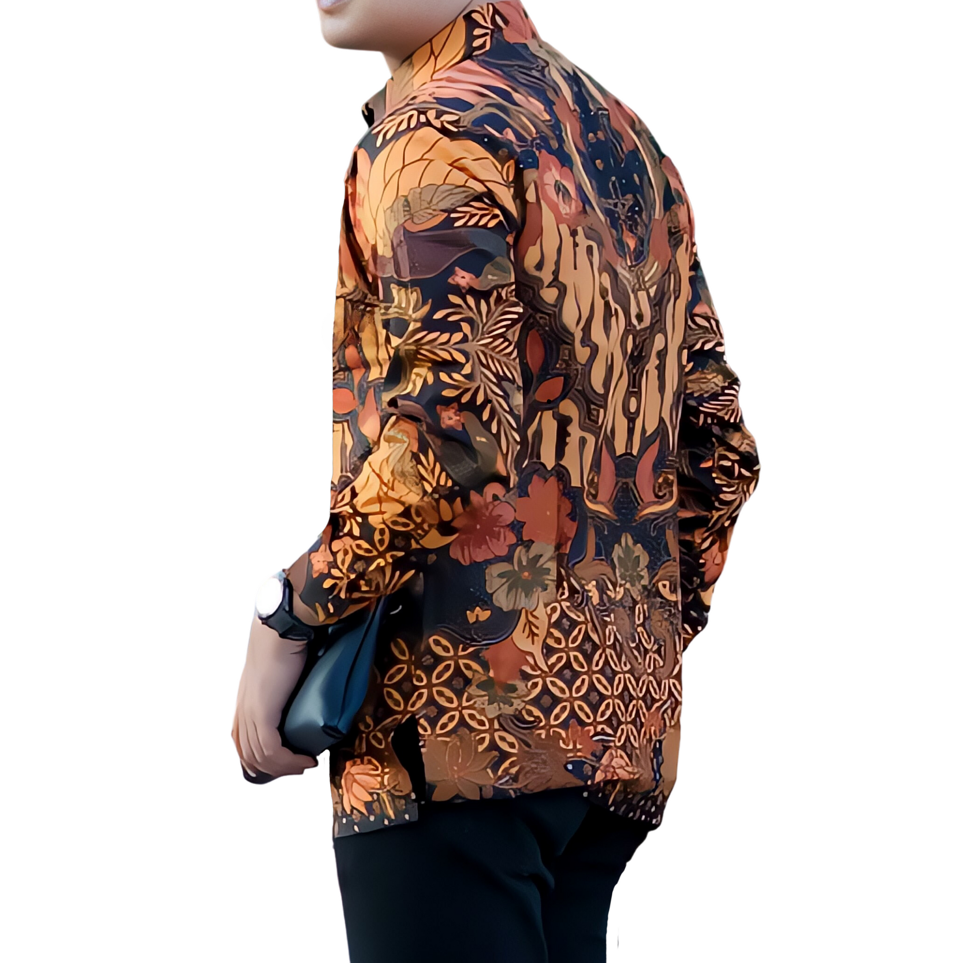 Men's Batik Shirt Orange Long Sleeve - Rajasura