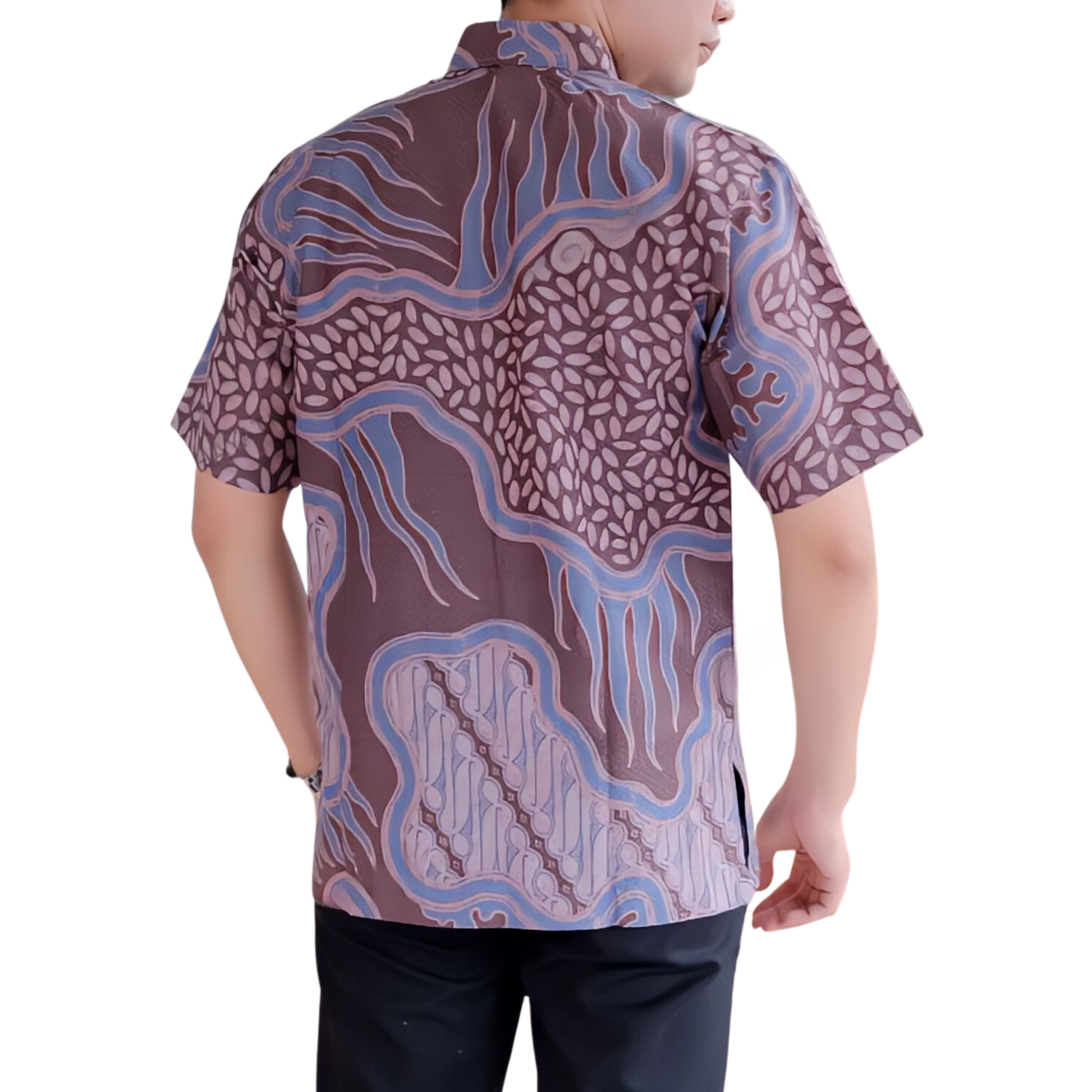 Men's Batik Shirt Purple Short Sleeve - Bengawan