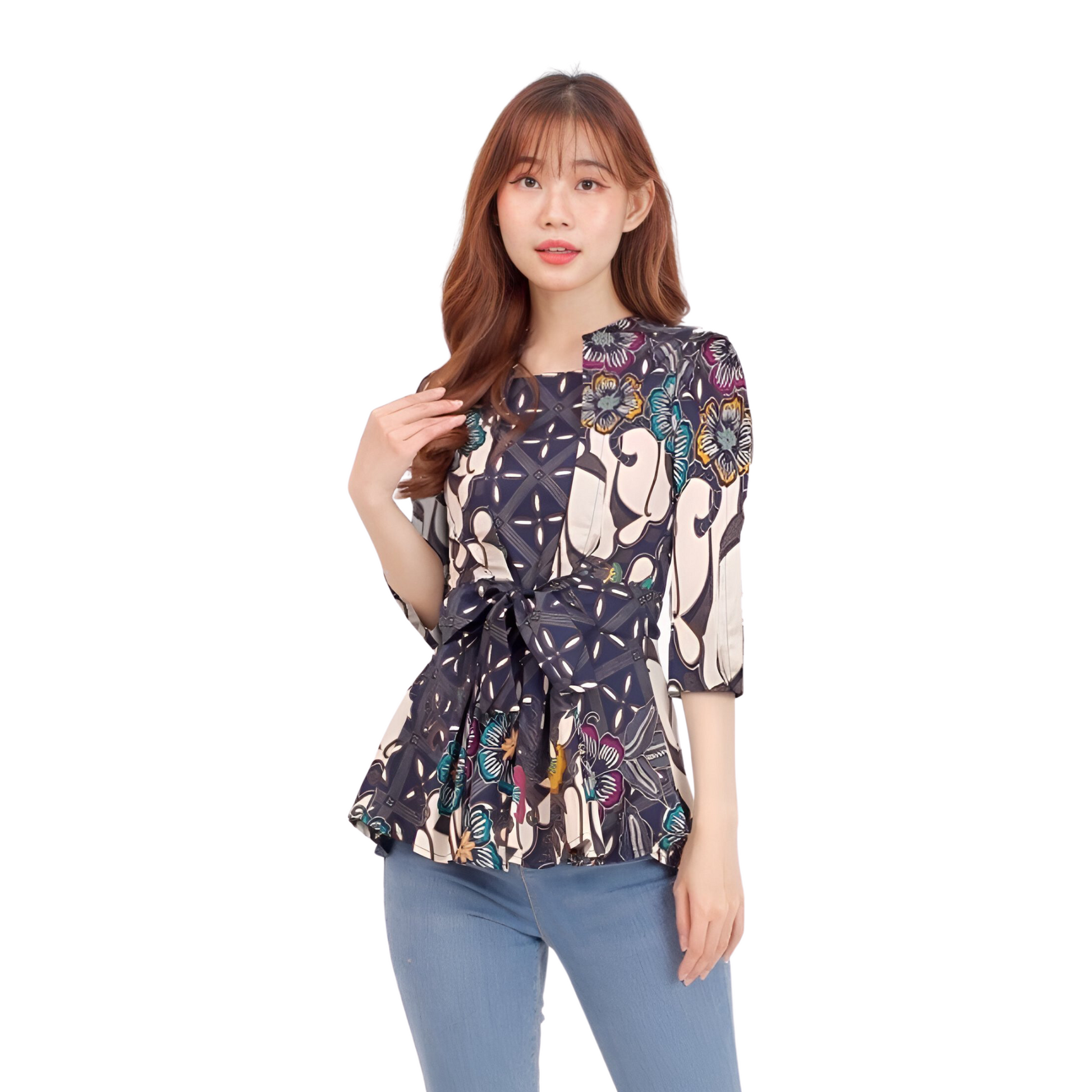 Women's Batik Blouse Navy 3/4 Sleeve - Kirana